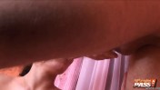 Молодая брюнетка красиво отсасывает пенис на кровати