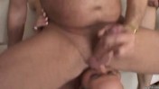 Симпатичная блондинка принимает члены мужиков в рот, лижет жопы и пьёт сперму