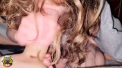 Кудрявая блондинка отсасывает крупный пенис